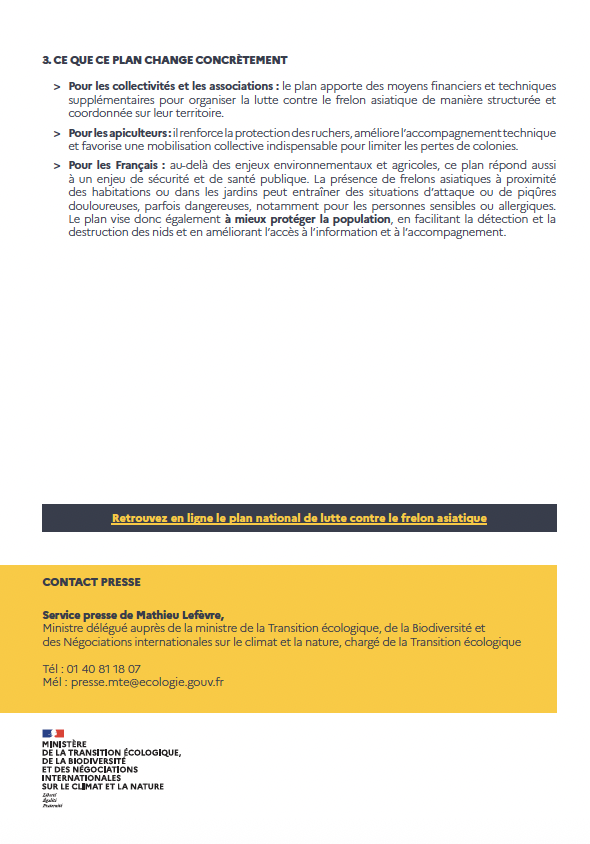 3. Communiqué de presse du Ministre MATHIEU LEFÈVRE MINISTRE DÉLÉGUÉ CHARGÉ DE LA TRANSITION ÉCOLOGIQUE se referant à la loi "Frelon"